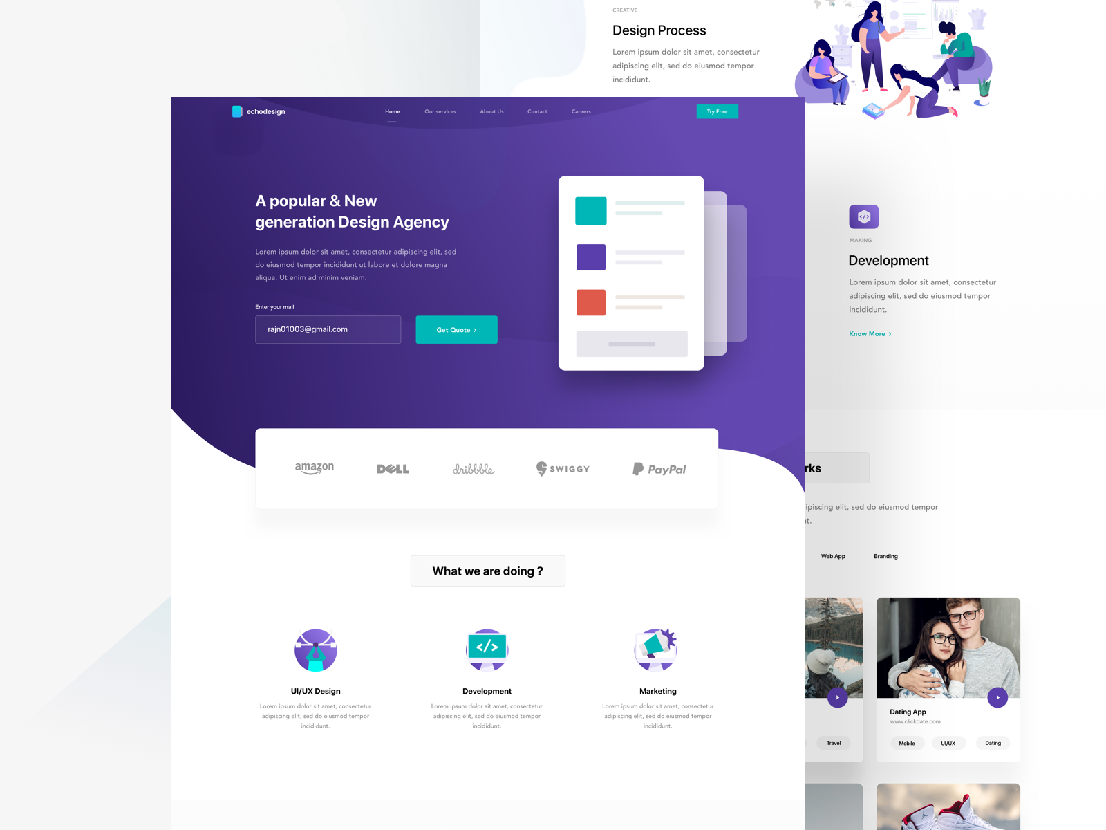 আমরা ওয়েব ও মোবাইল অ্যাপ, মার্কেটিং ওয়েবসাইট এবং ল্যান্ডিং পেজ ডিজাইন করি। আমরা যে ইন্টারফেস তৈরি করি তা ব্যবহারকারীদের সঙ্গে সংযুক্ত হয় এবং নতুন আচরণের উদ্রেক ঘটায় — কনভার্সন বৃদ্ধি, এনগেজমেন্ট বাড়ানো এবং আরও অনেক কিছু। আমরা প্রোডাক্ট ডিজাইনকে গ্রাহকের দৃষ্টিকোণ থেকে দেখি। শেষ ব্যবহারকারীদের ডিজাইন প্রক্রিয়ার কেন্দ্রে রেখে, আমরা এমন অভিজ্ঞতা তৈরি করি যা কার্যকরী এবং আবেগগত উভয়ই।